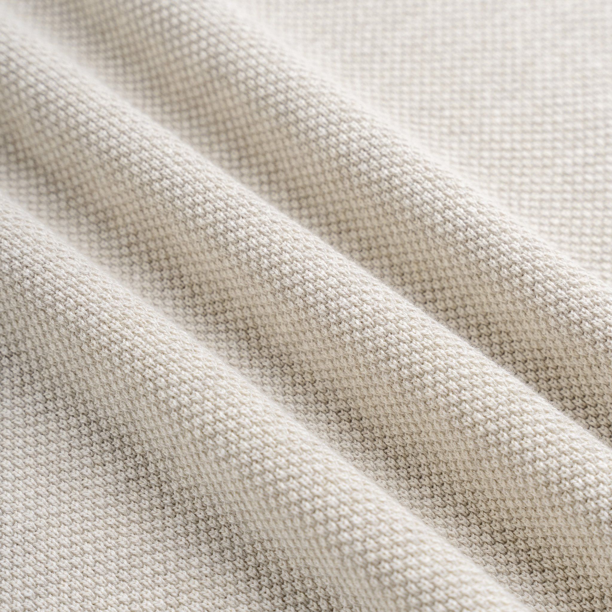 Chất liệu Cotton Melange, sản phẩm được dệt từ 98% cotton với hiệu ứng Melange (đốm đặc trưng) – một kỹ thuật dệt tạo nên sự pha trộn tinh tế giữa hai tông màu, đem lại sắc thái pastel – trung tính.