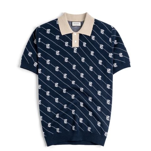 Áo Polo Dệt Kim By Cotton Monogram Phối Bo - Xanh Đen