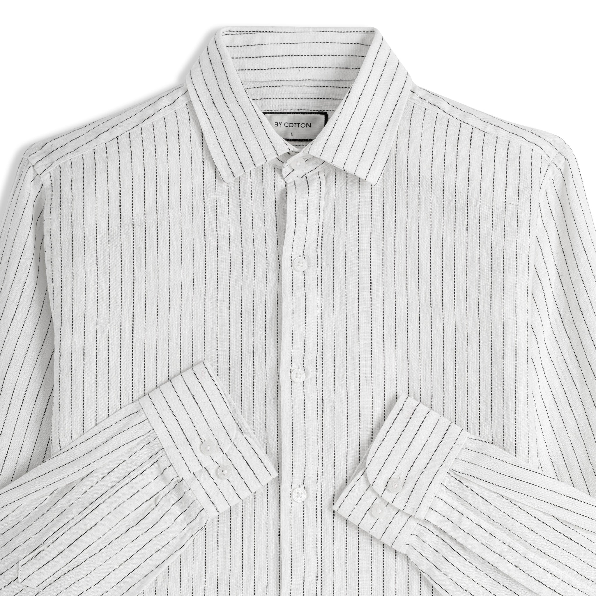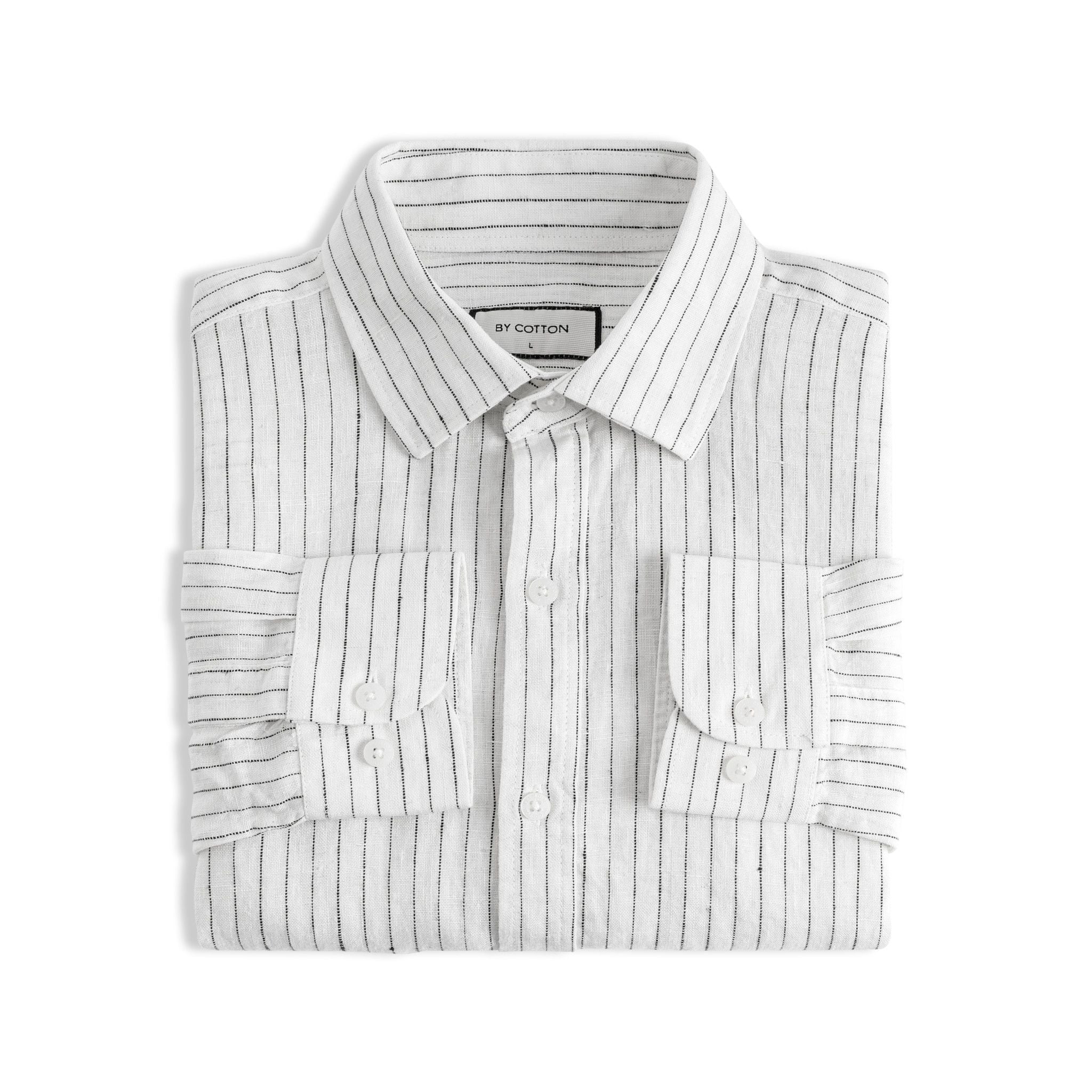 Áo Sơ Mi Nam By Cotton Linen Trắng Sọc Đen