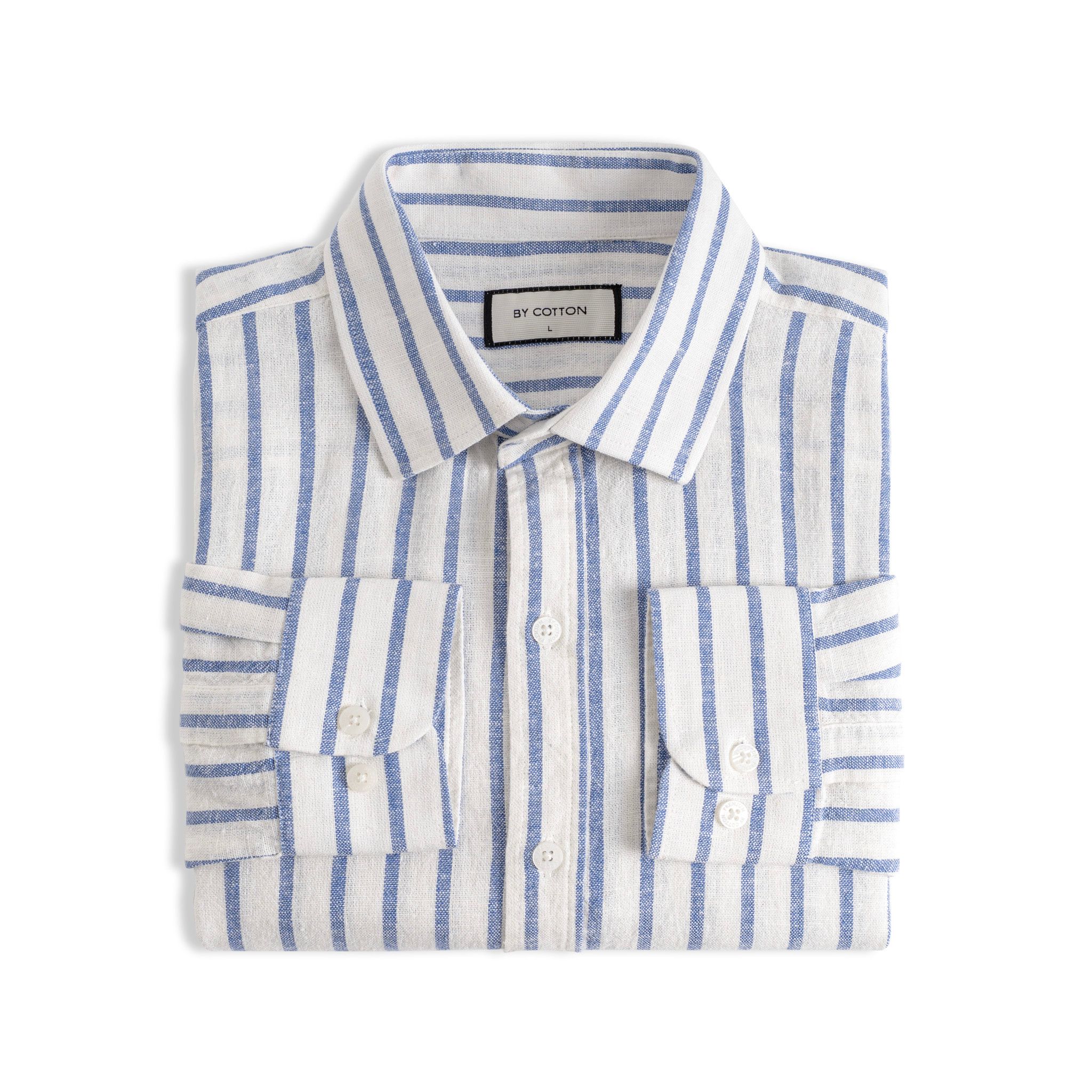 Áo Sơ Mi Nam By Cotton Linen Trắng Sọc Xanh