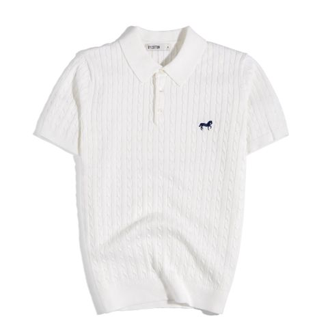 Áo Thun Polo Dệt Kim Twist Màu Kem