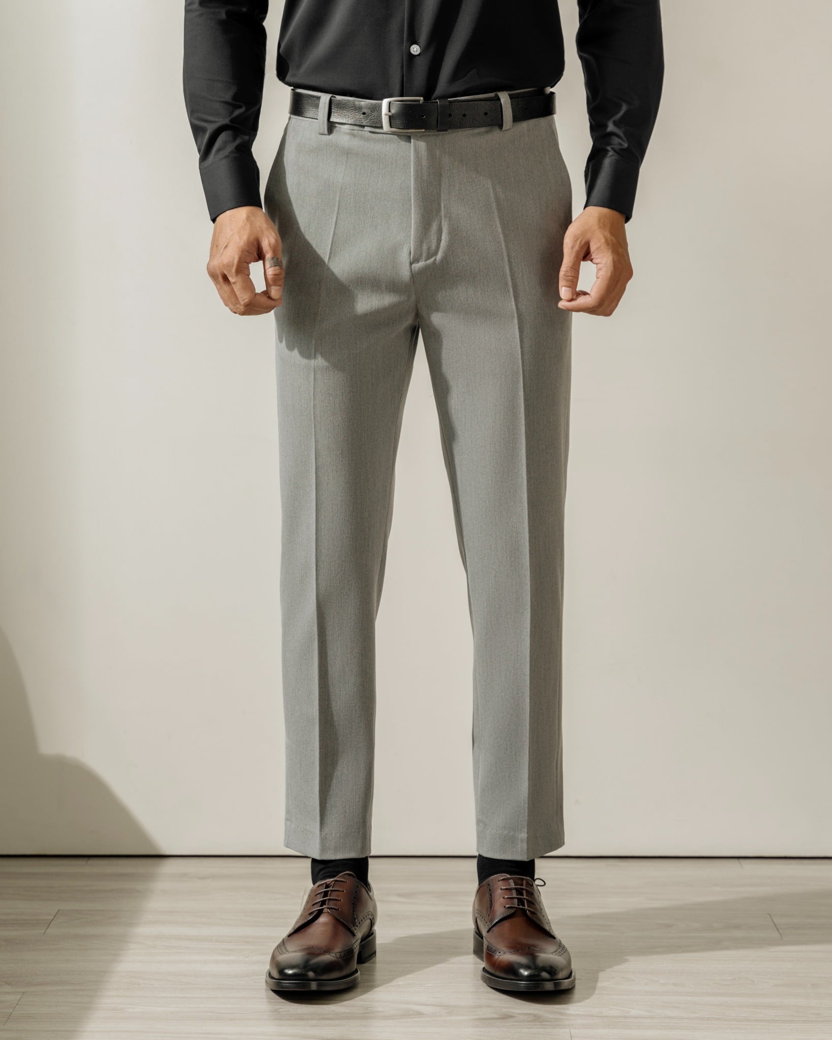 FORM DÁNG: Formal lịch lãm, Slimit vừa đủ không khiến phần hông hay ống đùi bị ôm. Dài quần đến mắt cá chân ở mức vừa phải (Form rất đứng). Phối kèm sơ mi hay các mẫu Polo đều hợp.